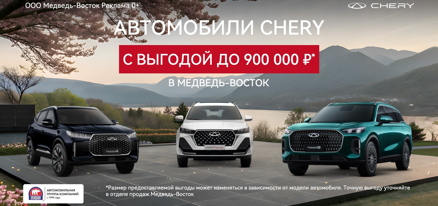 Подробности в отделах продаж официальных дилеров Chery: Чери центр, ул. 9 Мая, 72, тел. +7 (391) 291-1-291 * Цены и выгода действуют по 31 августа 2025 года при покупке по программам Трейд-Ин и использовании маркетинговых программ. Размер Вашей выгоды может отличаться. Подробности уточняйте в отделе продаж. Не оферта. Реклама 0+. Медведь-Восток (ИНН 2465105105).